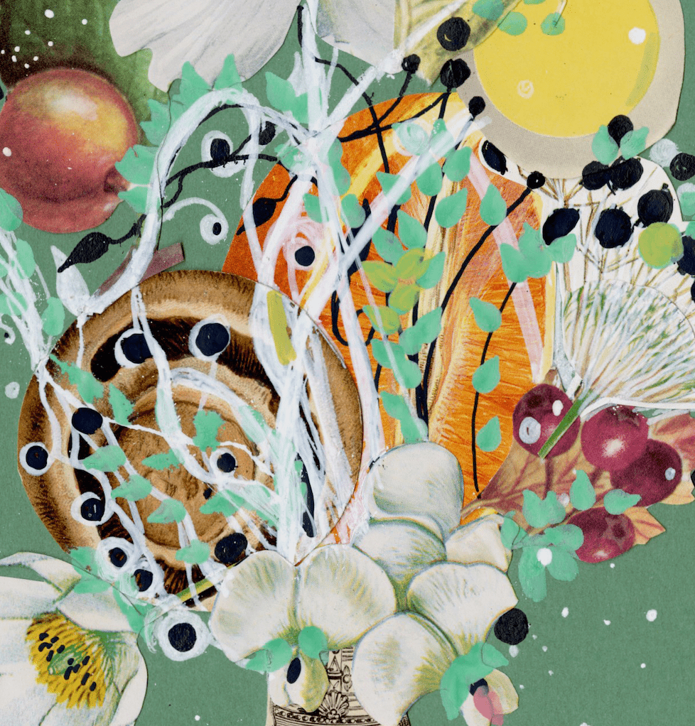 "As an artist who sees the process of creating art as non-linear, I find that I experience the past, present, and future lives of my work all simultaneously. These periods of time happen all at once, maybe not at all, and sometimes infinitely with no end in sight. I find everyday curiousness, the physical mementos (such as photographs & paper ephemera I use in my work), and the history and images from past travels to be present every time I bring pen to paper. For when one speaks to me about my work and my creative process, I wish they could see it all-the beginnings, the unknowns, the forgotten, the lost, the joyous, and the never-ending beauty of the story that brought me to this exact place and time."
