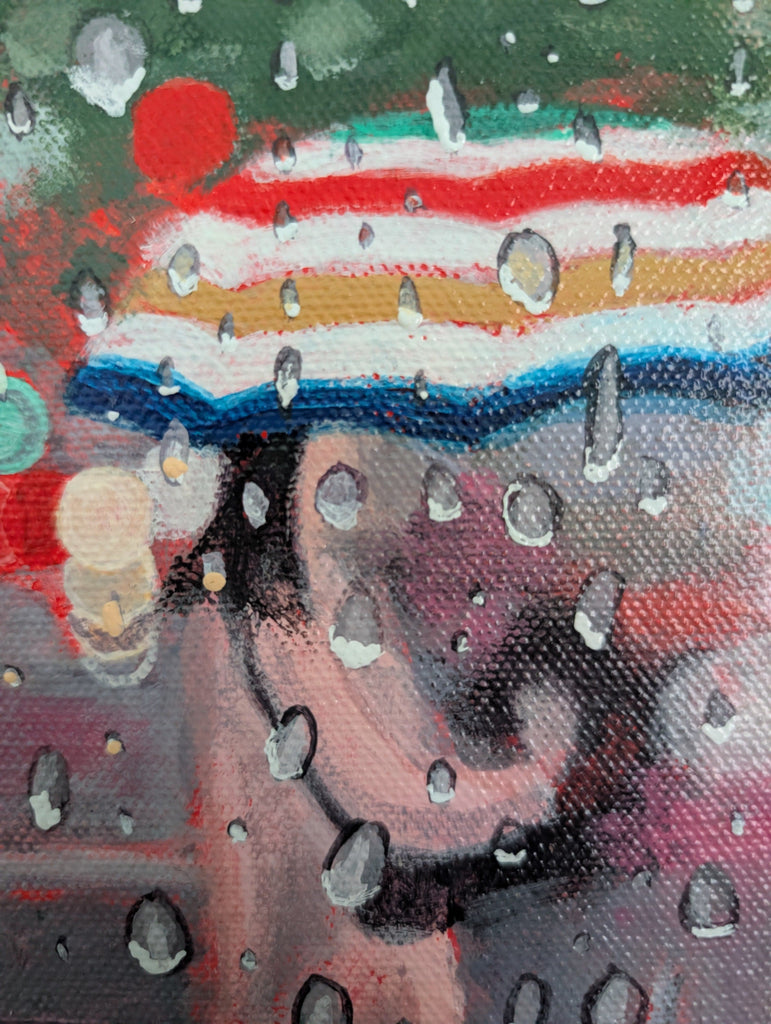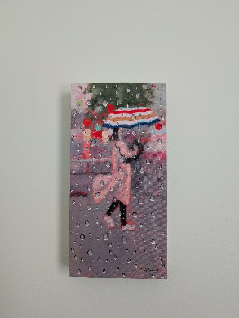 Poonam Khanna is an award-winning Toronto-based artist working in acrylics. Her rainy day paintings explore the effect rain can have on a urban landscape.