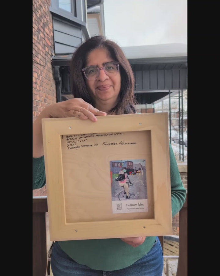Poonam Khanna is an award-winning Toronto-based artist working in acrylics. Her rainy day paintings explore the effect rain can have on a urban landscape.