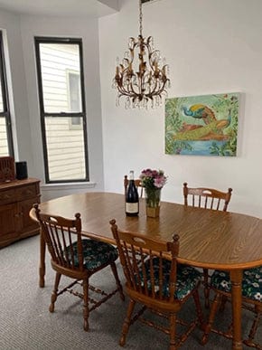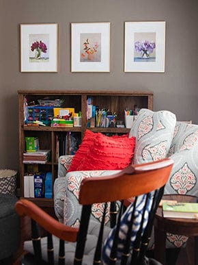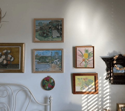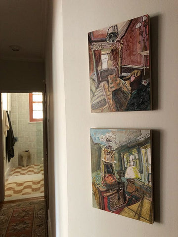 Client photo with paintings by Ingrid V. Wells and drawing by Bethany Cochran.